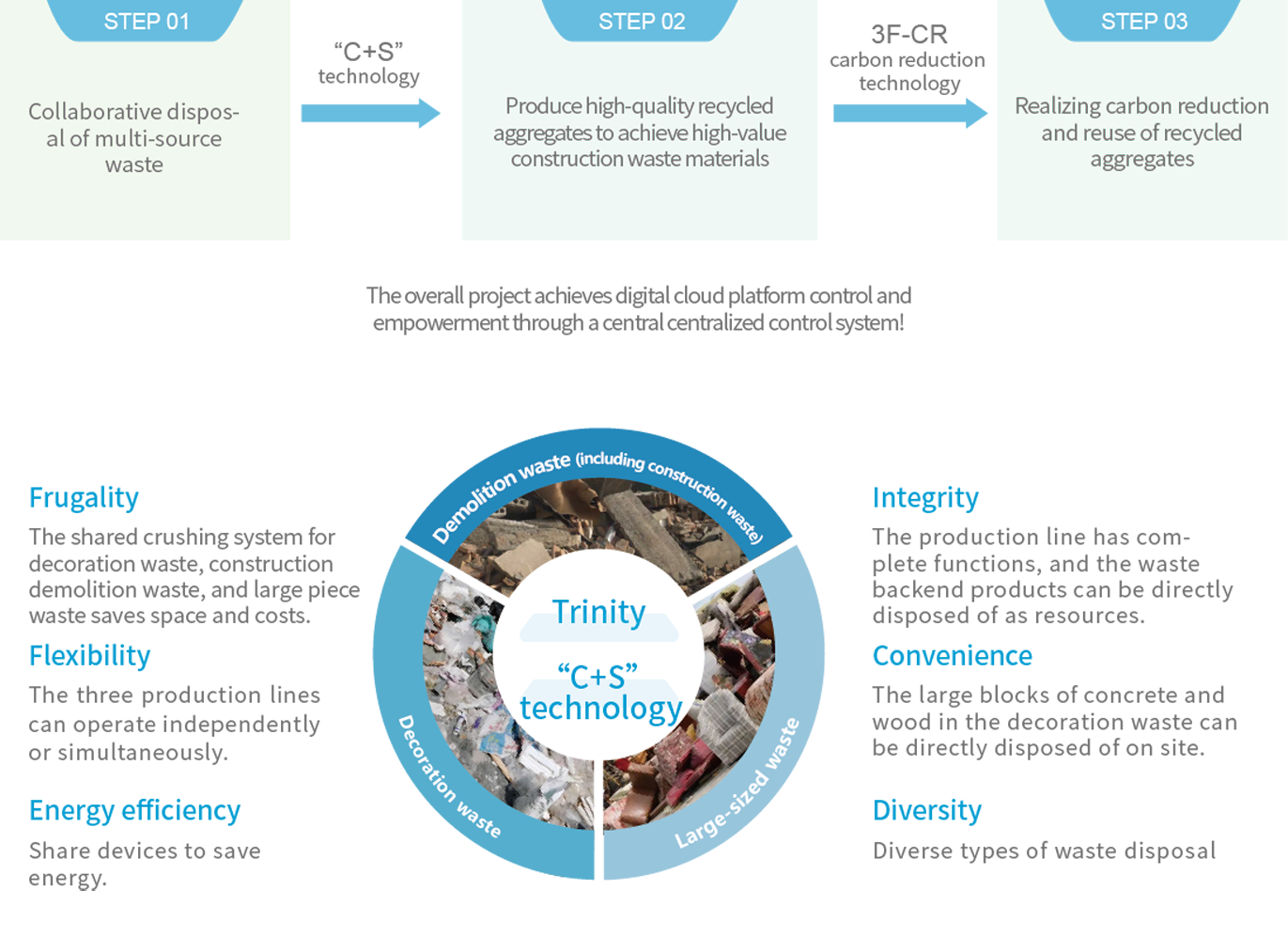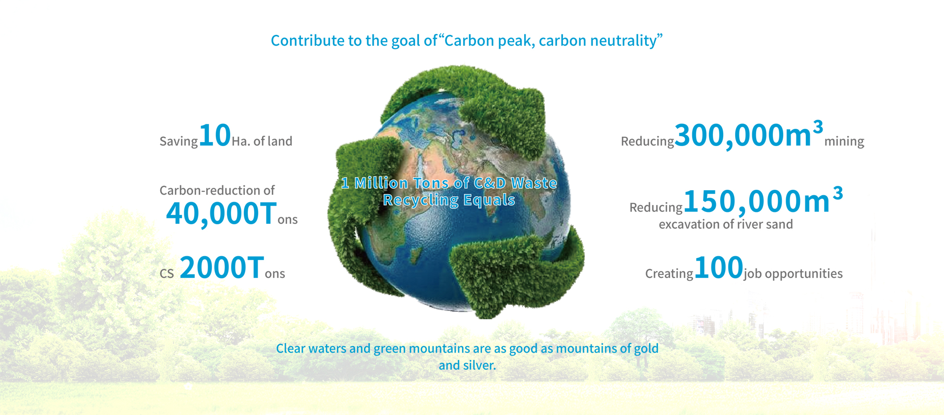 Working together with universities and institutes on R&D, e.g. partnered with Tongji University, founded an research Institute devoted to high-quality, low-carbon and innovative recycling of C&D waste; Entered into cooperation with German-China Talent and Technology Center, which provides an efficient communication platform for technology improvement and policy study of Germany and China, and provides technical support for the innovation and development of our solid waste recycling technology.