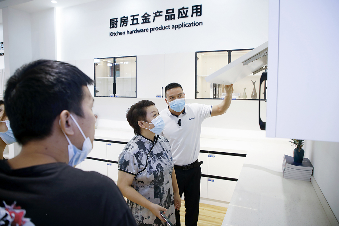 在廚房功能五金區(qū)域,全鋁高端拉籃系列選用上等鋁合金材質(zhì),防水耐臟,堅固耐刮,創(chuàng)意升級,靈動點綴黑晶鋼化玻璃,輕松解決廚房收納難題。