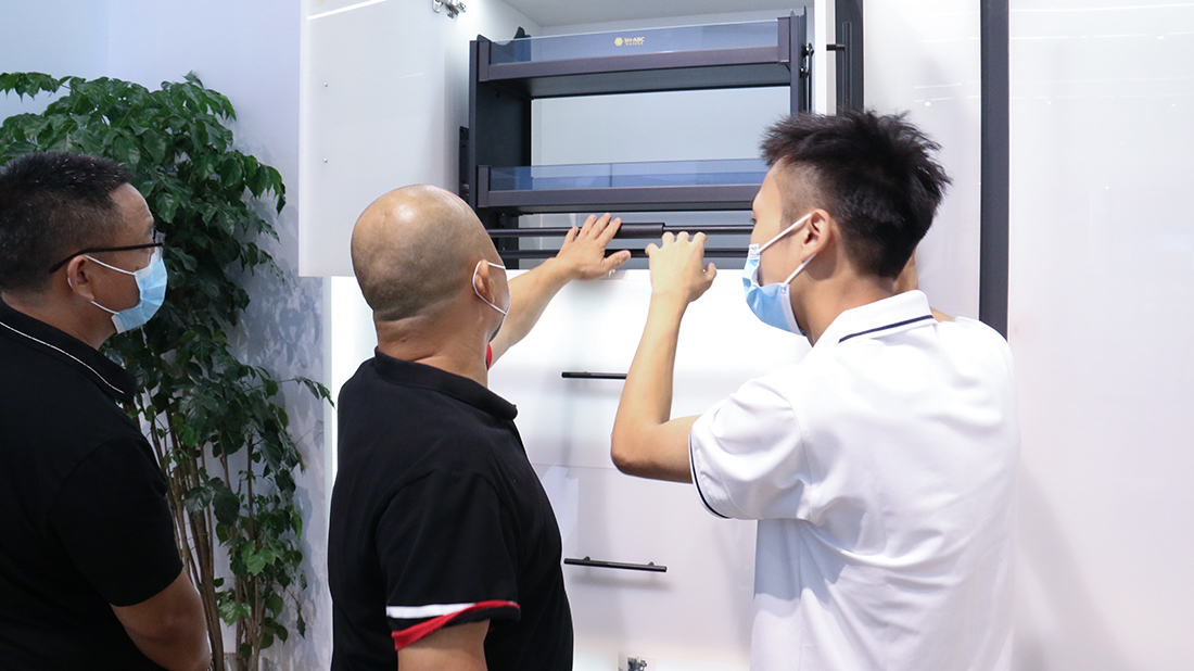 超薄豪華燈光玻璃騎馬抽:雅致窄邊玻璃側(cè)板,不僅成為廚房的收納高手,瑣碎盡收,且內(nèi)設智能燈光系統(tǒng),通透可視,抽屜打開燈光即亮,盡顯廚房的輕奢華麗。6方位的調(diào)節(jié)功能讓安裝調(diào)節(jié)更簡便,達到精準調(diào)節(jié)門縫的目的。