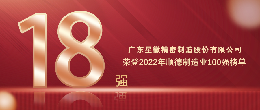 9月25日,“深耕順德,共享未來”順德區(qū)制造業(yè)百?gòu)?qiáng)發(fā)布會(huì)暨重大項(xiàng)目簽約活動(dòng)在順德舉行?;顒?dòng)上,順德區(qū)首次發(fā)布了“2022年順德制造業(yè)100強(qiáng)”榜單并為代表企業(yè)授牌。憑借強(qiáng)勁的綜合實(shí)力和品牌影響力,星徽精密進(jìn)入前20強(qiáng),位列百?gòu)?qiáng)榜第十八,奪得家居五金行業(yè)桂冠。