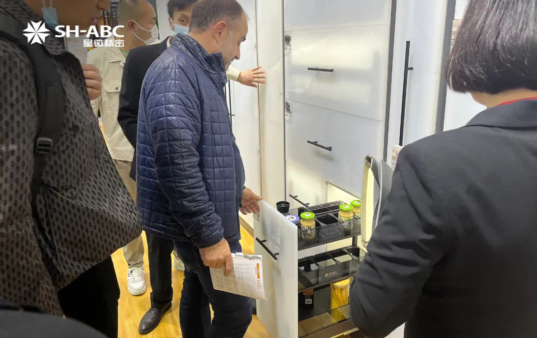 星徽精密在此次展位形象和產(chǎn)品發(fā)布上下足了功夫,充滿(mǎn)無(wú)限創(chuàng)意和專(zhuān)業(yè)化的設(shè)計(jì)讓星徽精密展區(qū)在人氣和體驗(yàn)上更勝一籌。展廳圍繞歐式廚柜五金、美式櫥柜五金、浴室柜五金、衣帽間以及廚房功能五金幾大場(chǎng)景,根據(jù)產(chǎn)品分類(lèi)進(jìn)行搭配,特色鮮明,主題突出,展區(qū)陳列設(shè)計(jì)簡(jiǎn)潔,讓參觀(guān)客戶(hù)體驗(yàn)到高端五金在家居生活中的實(shí)際使用。