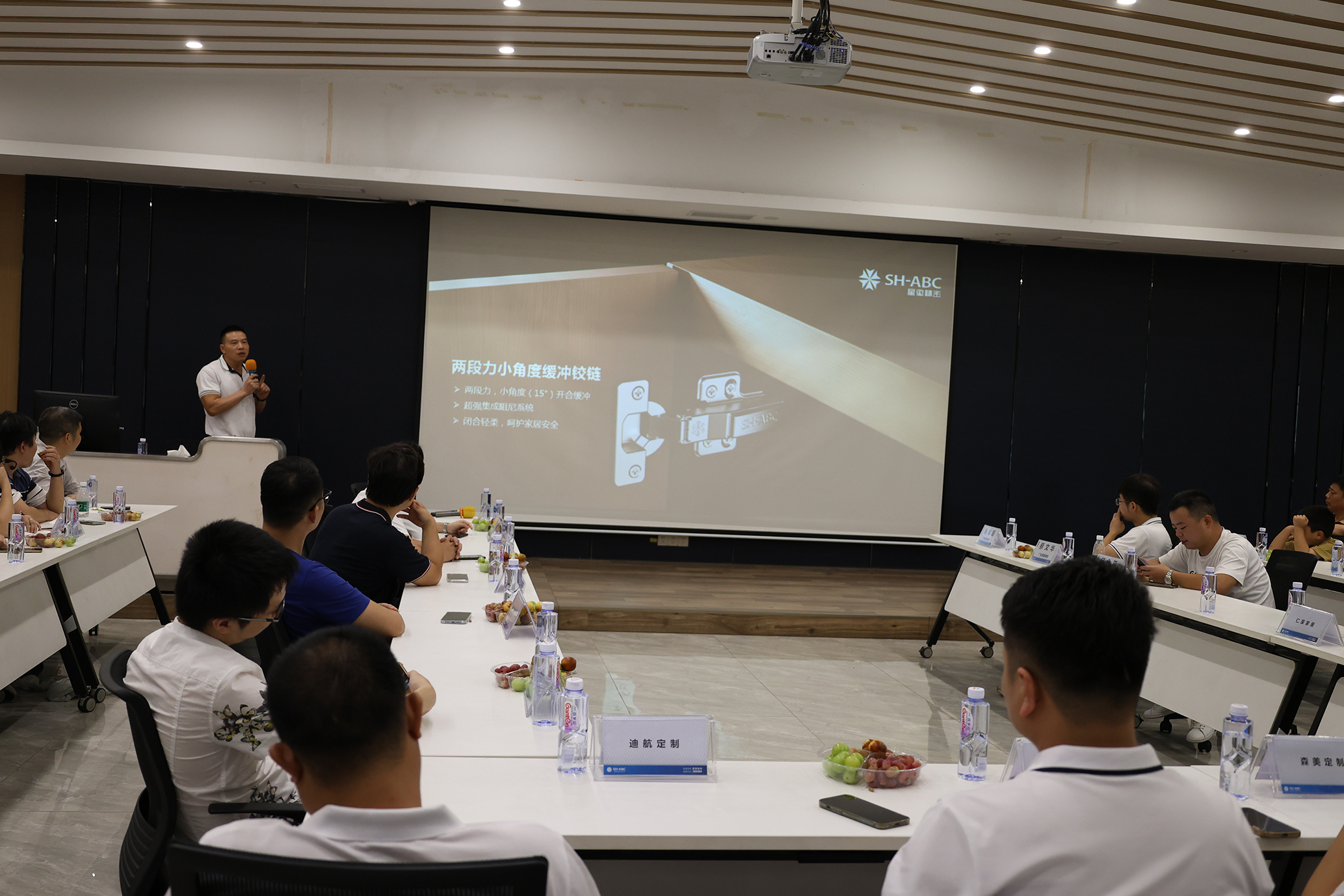 在座談會(huì)上,星徽精密市場(chǎng)部楊維國(guó)首先熱烈歡迎惠州家具行業(yè)協(xié)會(huì)成員一行的到來(lái),并對(duì)協(xié)會(huì)長(zhǎng)期以來(lái)對(duì)星徽精密的關(guān)懷和支持表示衷心感謝。隨后分享了燈光騎馬抽屜、上翻系統(tǒng)、兩節(jié)全展隱藏滑軌等星徽精密特色產(chǎn)品及星徽精密未來(lái)三年的戰(zhàn)略規(guī)劃。