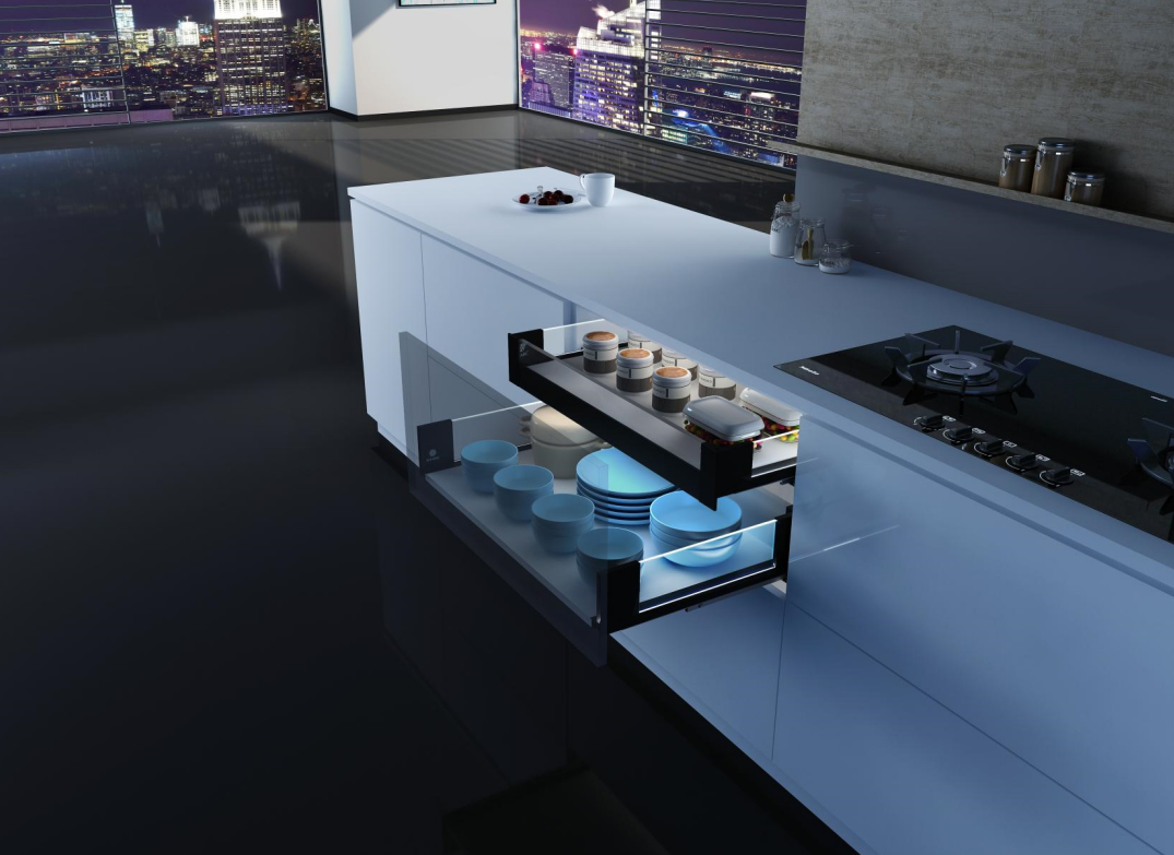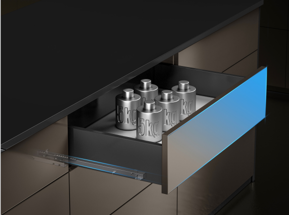 豪華燈光騎馬抽側(cè)板采用超薄鋼化玻璃+優(yōu)質(zhì)鋼材精制而成,美觀耐用;超敏紅外感應(yīng)技術(shù),拉開即使亮、關(guān)閉即暗;隱藏式靜音滑軌,三維六向調(diào)節(jié)。